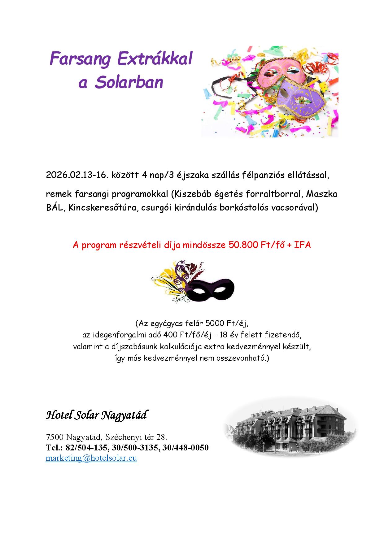 A Hotel Solar 2026. évi ajánlatai
